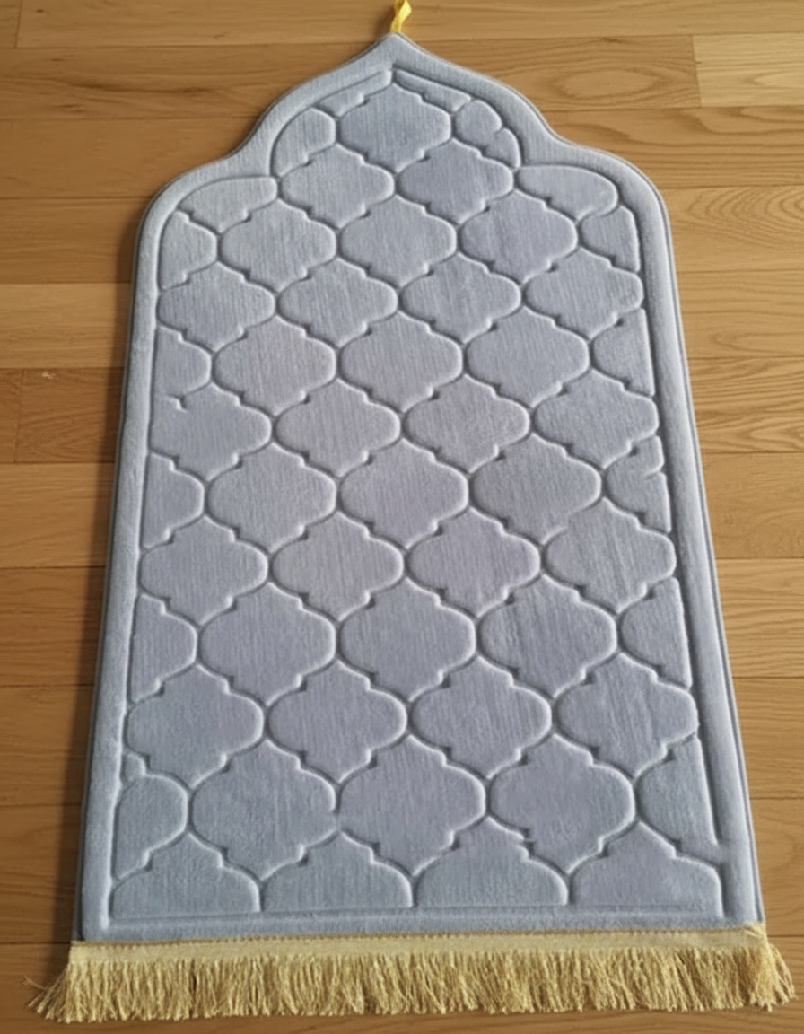Son motif embossé et ses franges dorées apportent une touche de sophistication, tandis que sa forme inspirée des mihrabs traditionnels en fait un choix idéal pour la maison ou pour offrir. Disponible en plusieurs coloris sobres et modernes, il allie tradition et élégance dans un format pratique.
