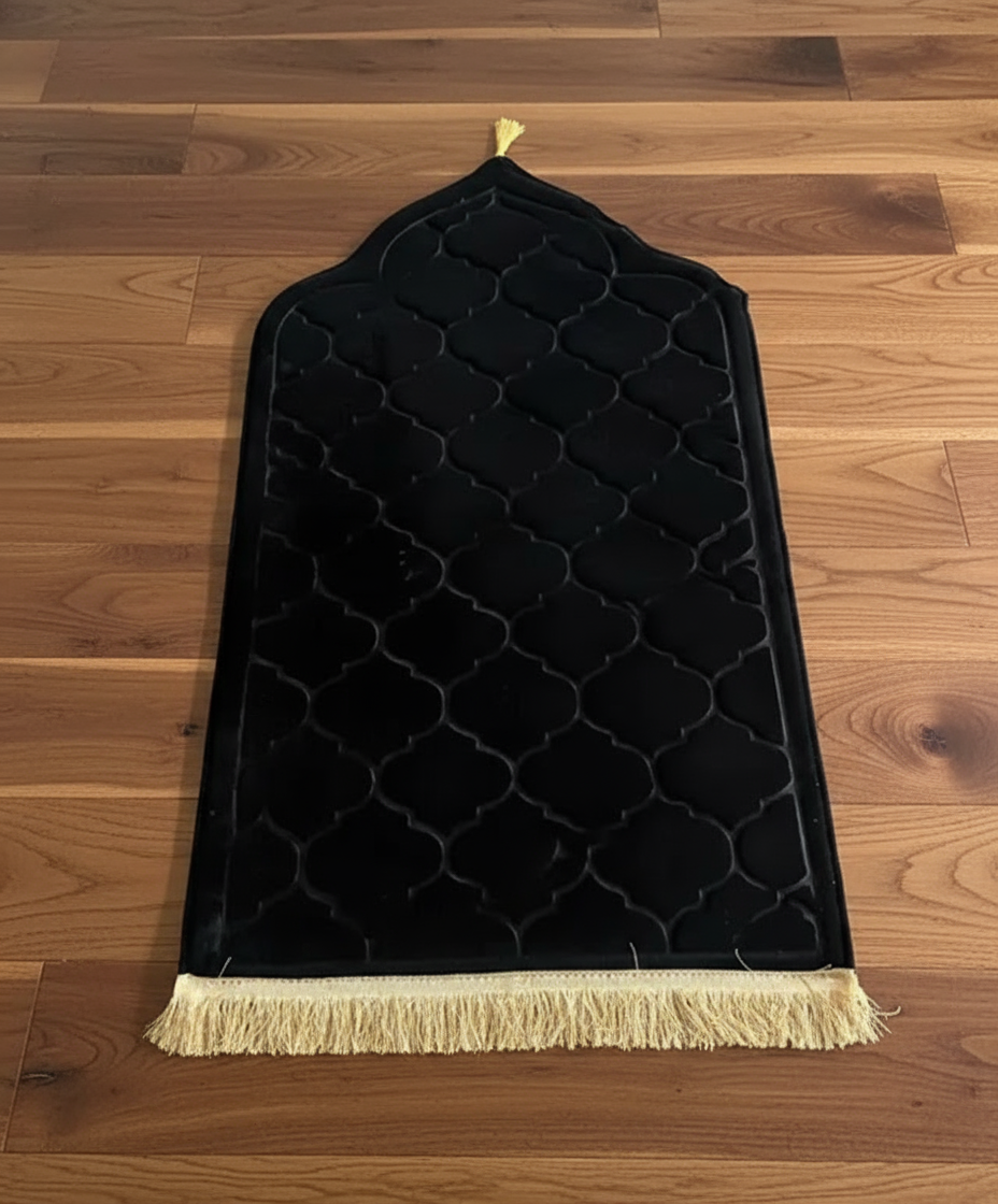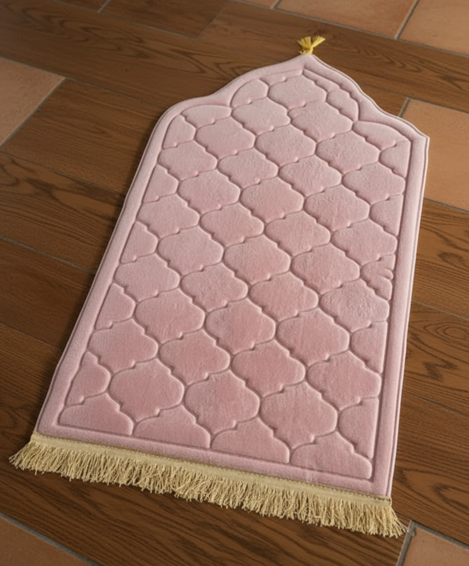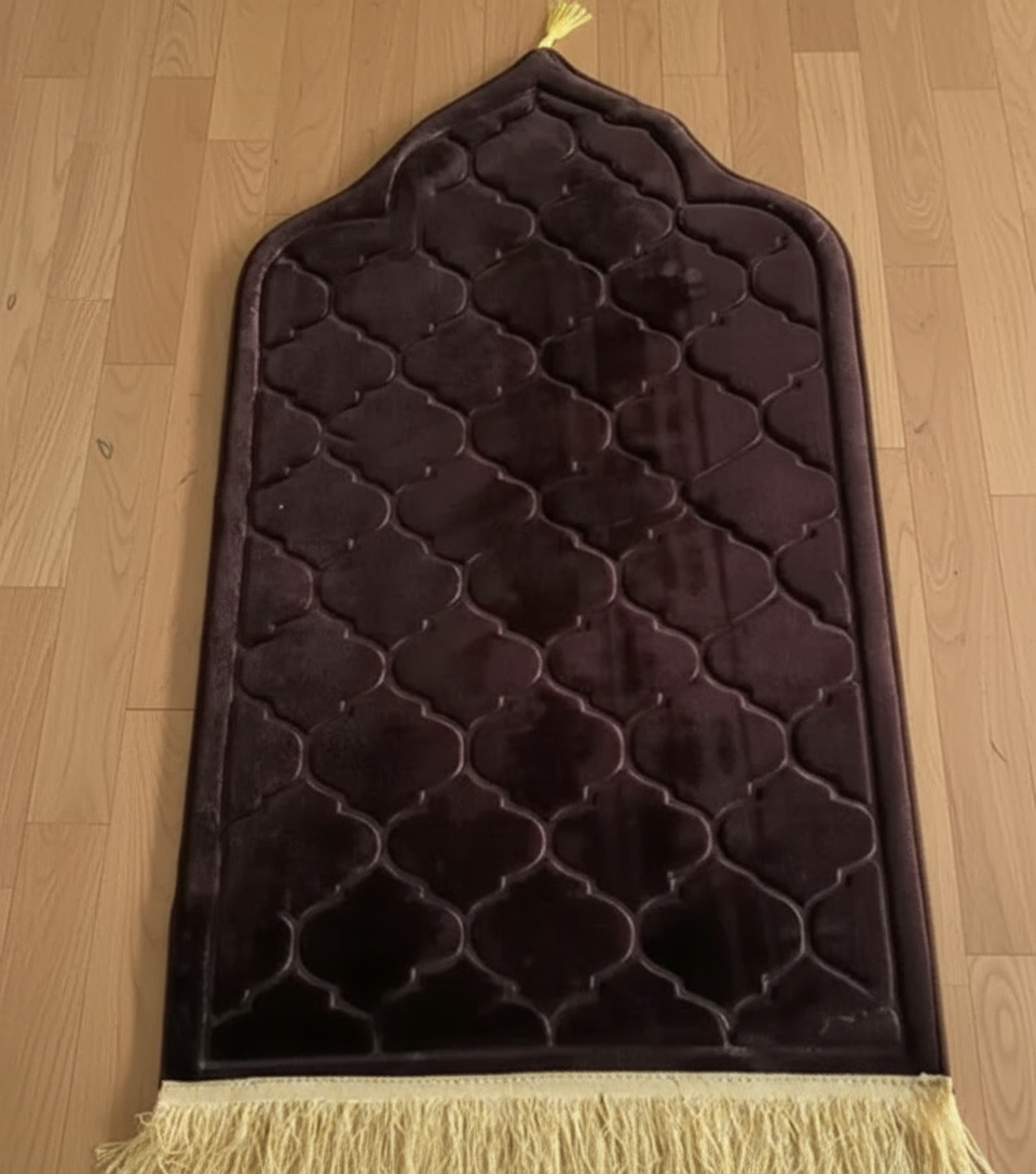 Tapis de prière doux en flanelle – design élégant avec franges dorées